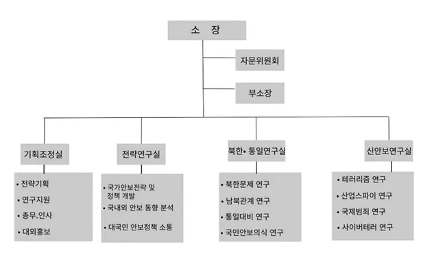 - 국가안보전략, 북한문제, 남북관계, 신안보 분야의 종합적인 연구를 통해 국민에게 도움이 되는 실효성 있는 대안 제시와 정책 개발에 기여
